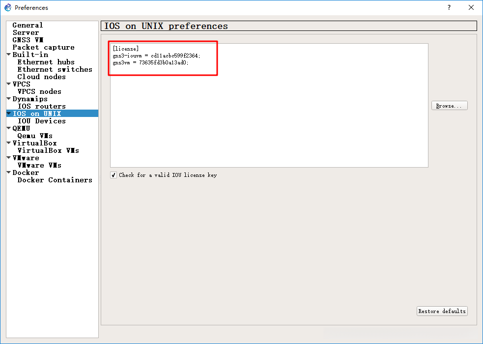 IOU需要加载license验证通过后才能正常启动系统开始试验,加载iourc文件