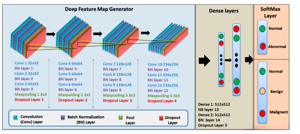 本文的改进模型是通过使用改进的深度卷积神经网络(CNN)模型来实现的,该模型在一组乳房x光片斑块上进行训练,将其分类为正常或异常病例。
