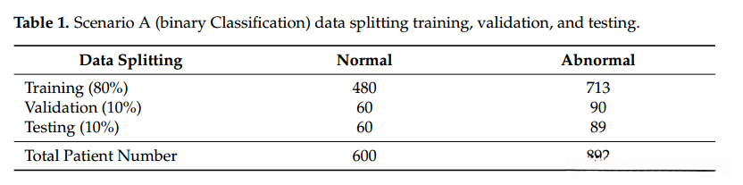 应用补丁创建过程后,生成的两个文件夹(命名为“X”和“Y”)保存所有补丁。还使用已创建的具有患者id的CSV文件指导此过程,以便将每个补丁传输到目标文件夹:train、val或test文件夹。为了使用第一种策略创建数据集,创建了三个文件夹:train、val和test文件夹,它们分别被命名为“Tr”、“Va”和“Te”。在每个文件夹中,创建了两个名为“Normal”和“Abnormal”的文件夹。