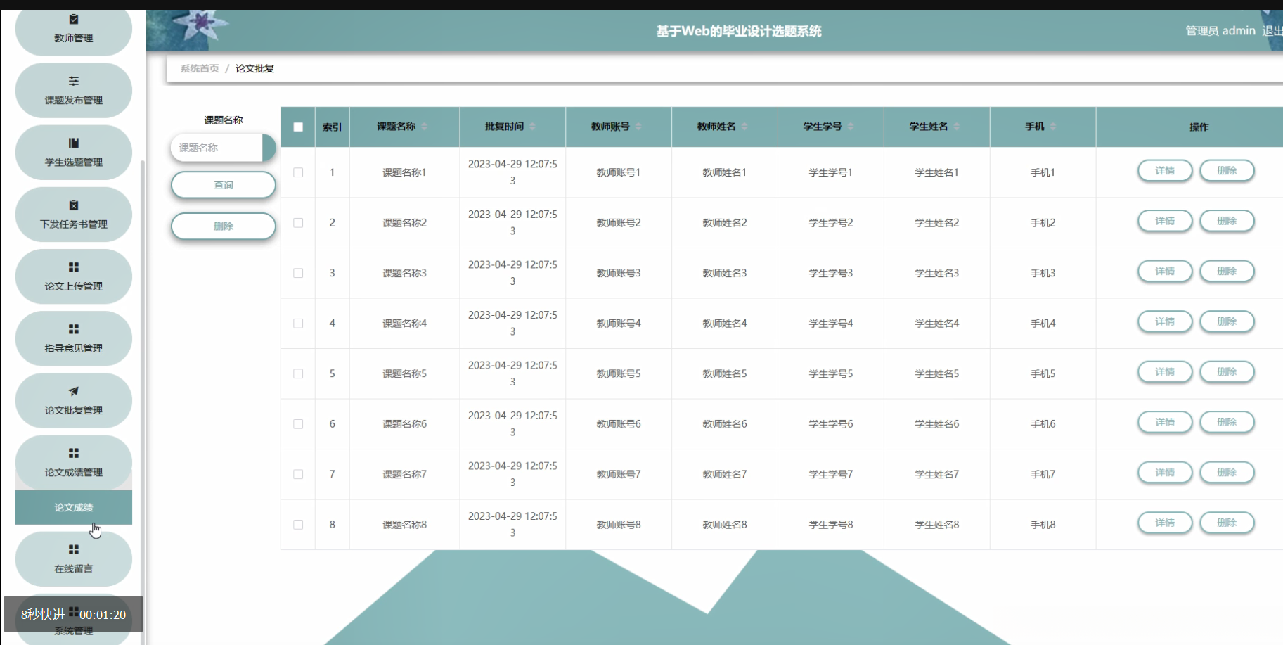 在当今高等教育体系中,毕业设计作为培养学生综合运用所学知识、提升实践创新能力的重要环节,其选题过程直接关系到学生毕业设计的质量与效果。然而,传统的人工选题方式存在信息不对称、选题效率低下、管理繁琐等问题,难以满足日益增长的个性化教学需求。因此,开发一套高效、便捷的毕业设计选题系统显得尤为重要。该系统旨在通过信息化手段,优化选题流程,提升选题效率,确保每位学生都能获得符合其兴趣和专业方向的毕业设计课题,进而促进教学质量的整体提升。