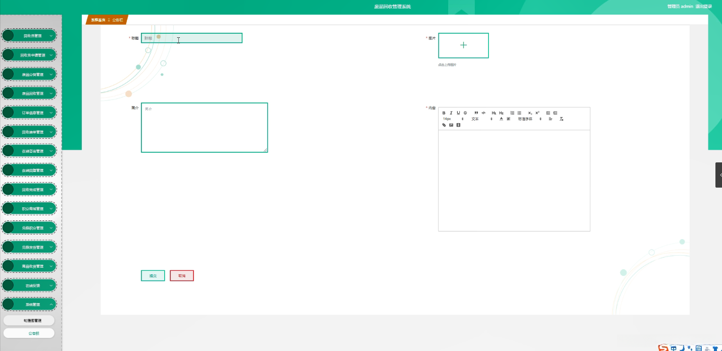 通过本研究,预期将开发出一个功能完善、操作便捷的废品回收管理系统。该系统将能够整合用户、回收员、废品分类、废品回收等各方资源,实现废品回收的全程信息化管理和服务。通过该系统,用户可以方便地提交废品回收需求,回收员可以高效地接单并完成回收任务,系统能够实时记录订单信息和回收情况,提高废品回收的效率和透明度。同时,积分商城的引入将激励用户积极参与废品回收,形成良性循环。该系统将为废品回收行业的发展提供有力支持,推动行业的规范化和信息化进程。
