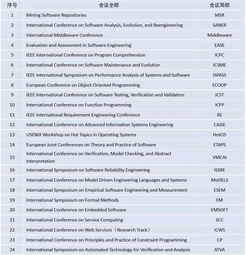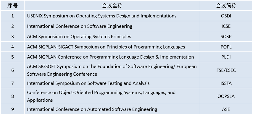 在系统软件与软件工程方向 ,清华推荐了9个A类会议,24个B类会议;A类期刊3个,B类期刊12个;