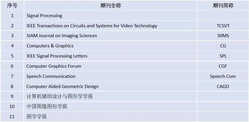 清华和CCF推荐的A类会议相同。清华把CCF定为B类的TMM、CAD期刊定为A类;在B类期刊中增加了计算机辅助设计与图形学学报、中国图像图形学报、图学学报会三个期刊。