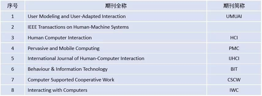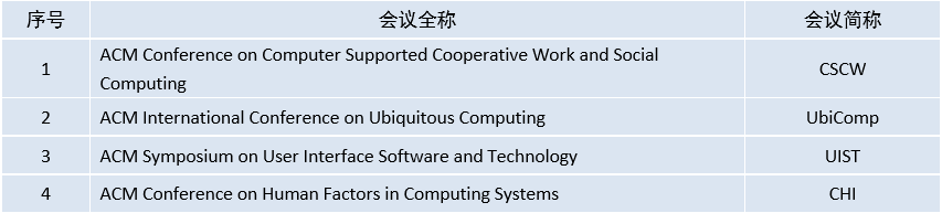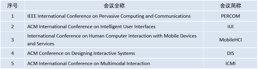 在人机交互与普适计算方向 ,清华推荐的A类会议4个, B类会议5个;A类期刊2个,B类期刊8个。
