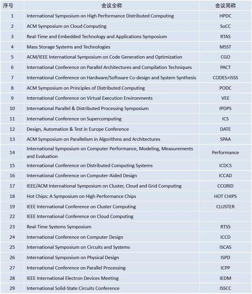 清华把CCF定为B类的EuroSys、SIGMETRICS、FPGA三大会议评为了A类。其中Eurosys会议是由ACM SIGOPS举办的欧洲系统领域最好的国际学术会议,也是目前国际系统领域的重要会议。ACM SIGMETRICS则是计算机性能建模、分析与优化领域的顶级会议;FPGA会议是FPGA领域最重要的顶级会议。清华还把CCF定为C类的CCGRID、ASP-DAC、ISLPED会议定为B类。