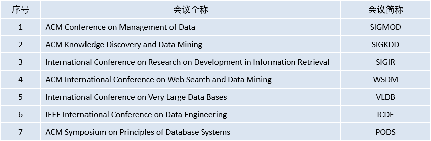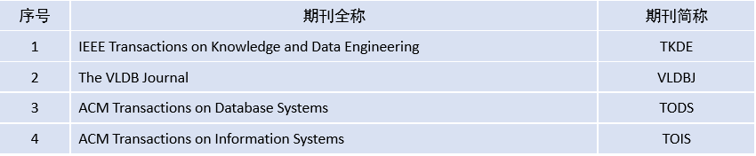 在数据库与数据挖掘方向 ,清华推荐了7个A类会议,9个B类会议;A类期刊4个,B类期刊17个。