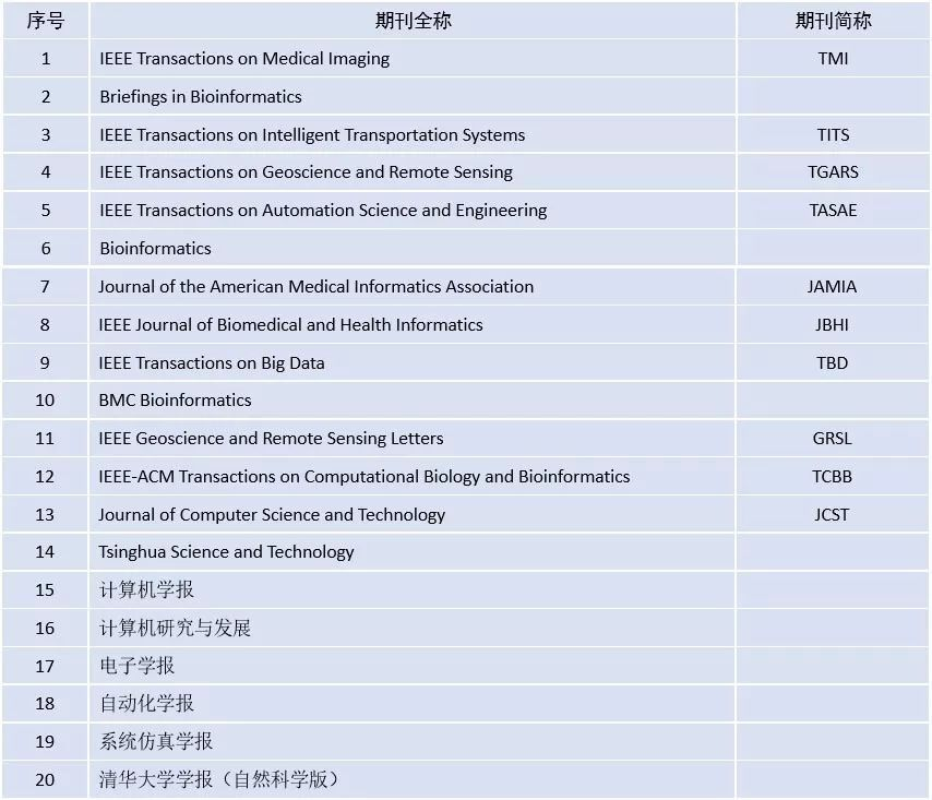 清华新版计算机学科推荐学术会议和期刊列表发布