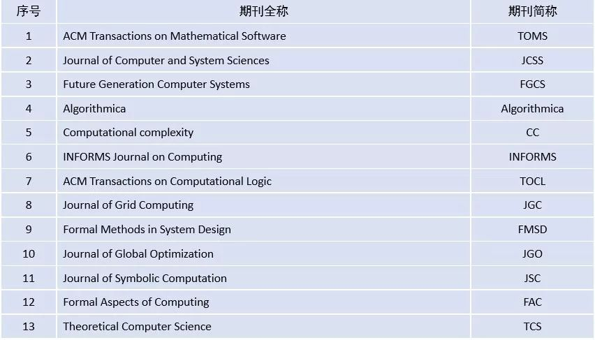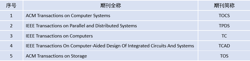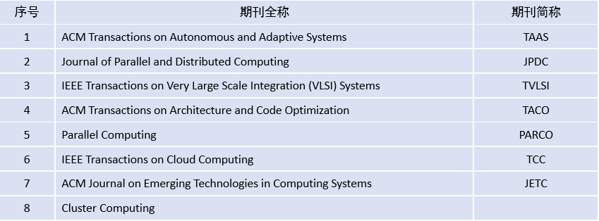 在高性能计算方向 ,清华与CCF推荐的A类期刊相同,都有5个,排序略有不同;清华推荐期刊列表中有8个B类;CCF有10个B类、11个C类。