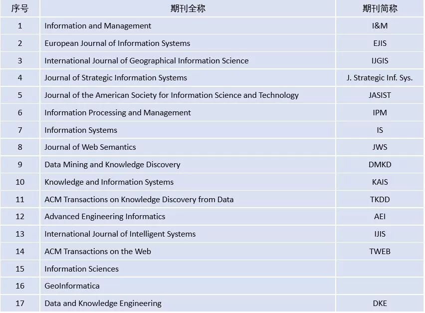 CCF A类会议5个,B类会议11个;C类会议12个。A类期刊4个,B类期刊13个,C类期刊14个。