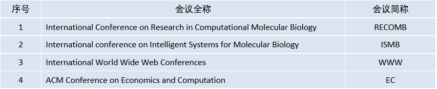 CCF推荐A类会议4个,B类会议10个,C类会议19个。A类期刊3个,B类期刊6个,C类期刊10个。