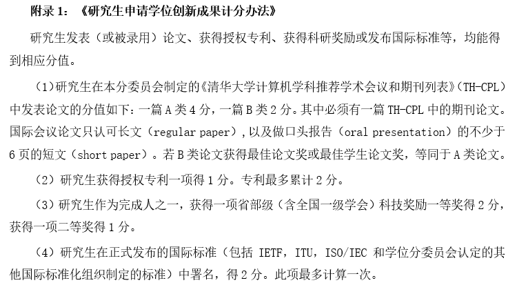 对于想要申请清华大学计算机相关学科的博士或硕士学位所需取得的创新成果做了基本规定。