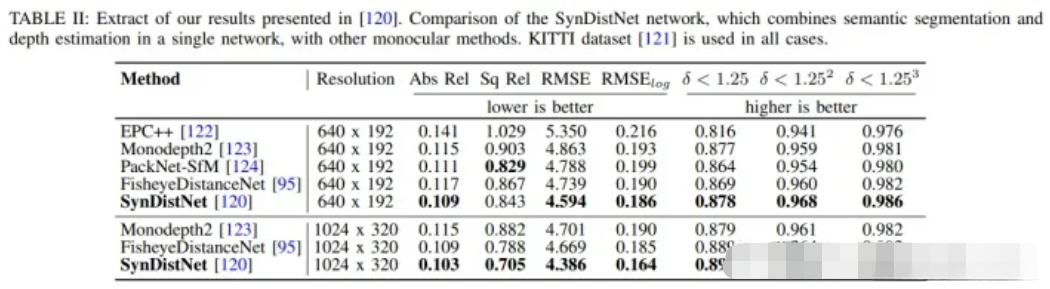 如所述,在视频序列的基础上进行场景几何体的重建。具体而言,在构建深度估计算法的过程中[74]中简要概述了人类如何推断深度,并提供了有用的进一步参考。推断深度主要包含以下四种基本方法:单目视觉线索、运动视差、立体视觉和焦点深度。每种方法在计算机视觉方面都有其独特的优势与应用范围:基于Marr&Poggio等人的早期理论工作[75]提出了立体视觉系统的初步实现框架[76]。尽管如此,在实际应用中由于技术限制与成本考量[78][79]的原因,立体视觉系统并未普遍应用于汽车部署领域。然而,在汽车研究领域中仍具有广泛的应用价值。传统的计算深度估计方法主要依赖于特征三角剖分完成[78]。然而,在随后的研究中发现运动立体方案同样具有可行性与应用潜力【