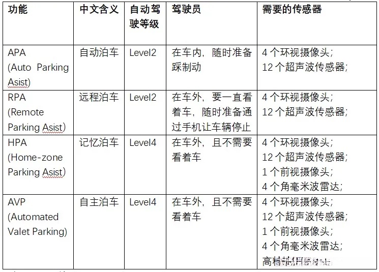 2、自动泊车的分类