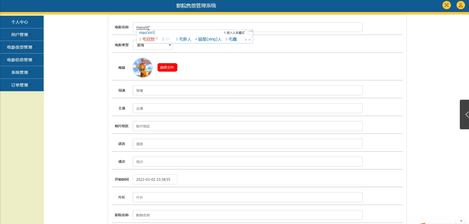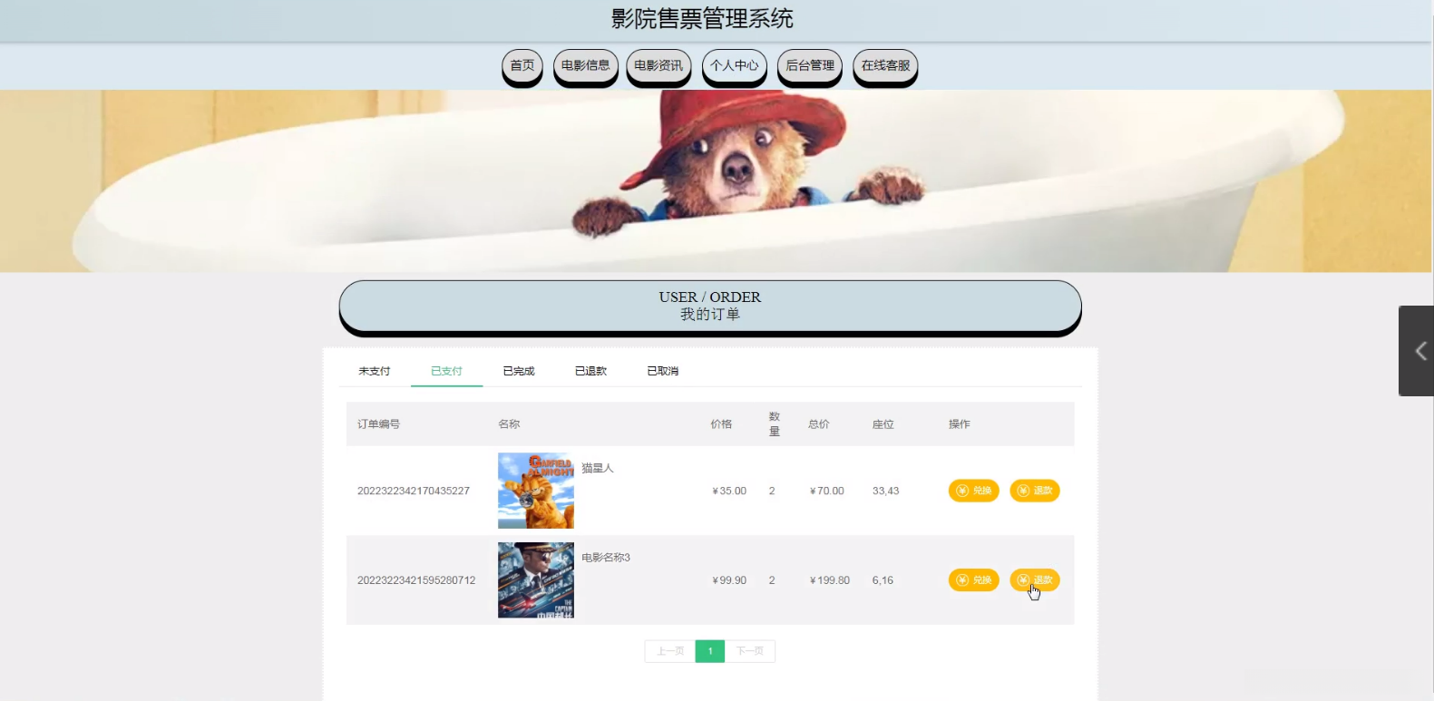 影院售票管理系统(JSP+java+springmvc+mysql+MyBatis)