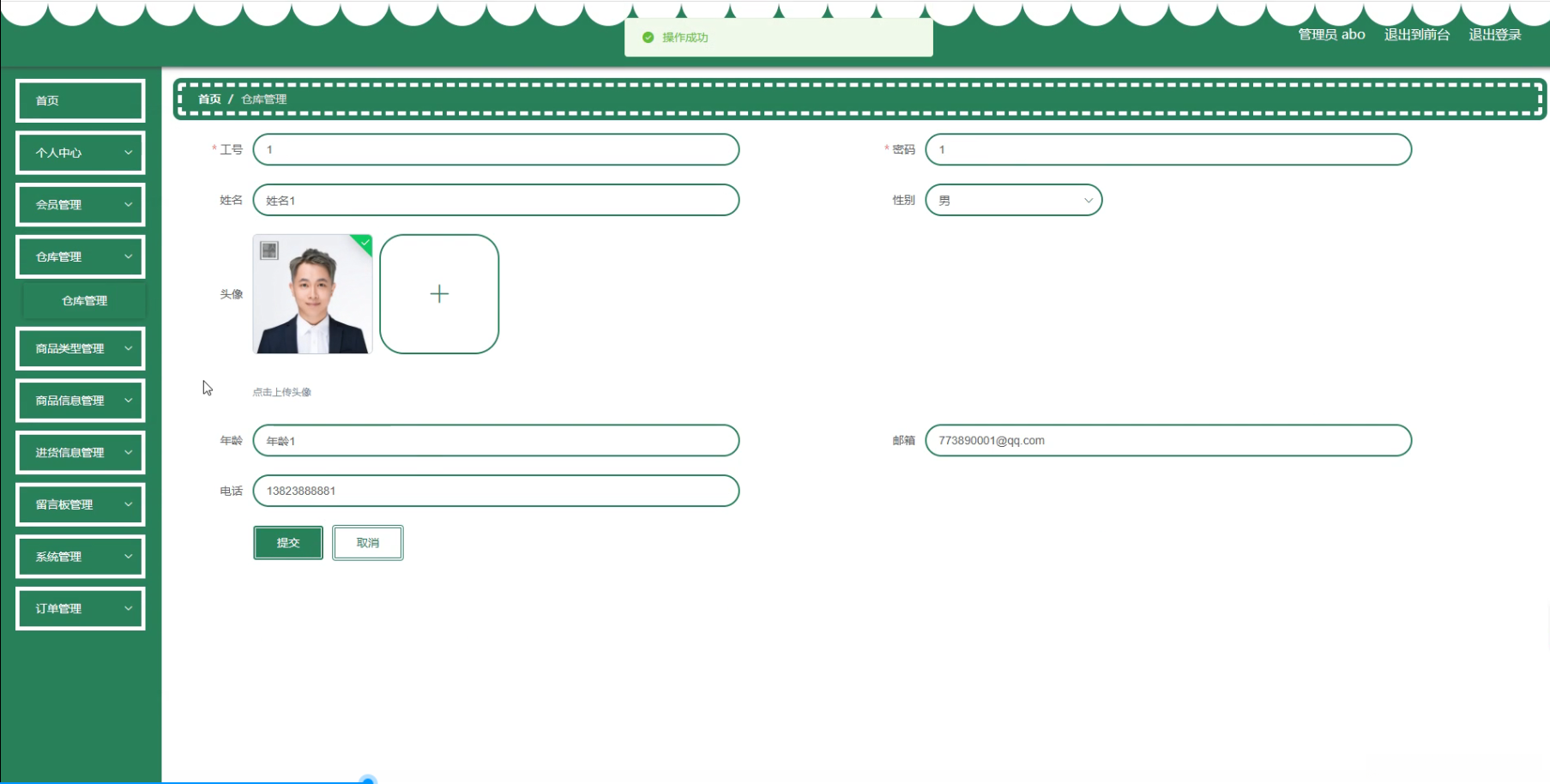 其次,在这个系统中扮演关键角色的是仓管模块。这一核心组件承担着记录库存数据并提供动态监测服务,并整合了进出库操作记录等多种功能组合在一起的作用。它不仅负责维护仓管信息以及实时追踪存货水平,并且还整合了进出库操作记录等多重功能以全面支持仓管流程的有效运行。借助该核心组件的功能配置与优化设计,在提高仓储运营效率的同时也显著提升了系统的可靠性和稳定性