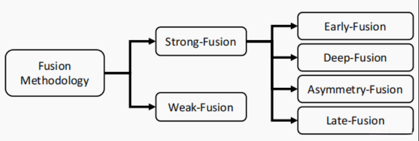 基于模态信息间的关联程度, 我们可以将这些融合方法划分为强关联与弱关联两大类. 具体而言, 强关联的方法又可被划分为早期整合、全面整合、后期整合以及不对称整合四个具体种别.