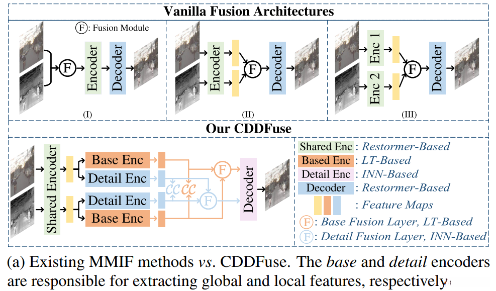 Zhao et al.提出了一种名为Cddfuse的方法用于多模态图像融合的具体技术:该方法基于相关性的双分支特征分解策略。
