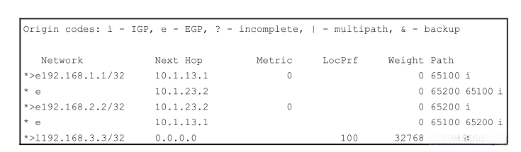 径算法会为指定前缀选择出最优 NLRI。Loc-RIB 表是用来向 IP 路由表提供路由的表。