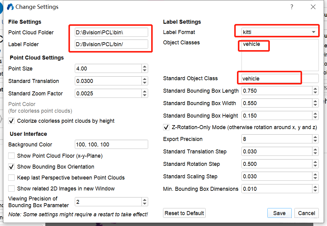 在setting界面按需设置,笔者这里按kitti格式生成label数据:
