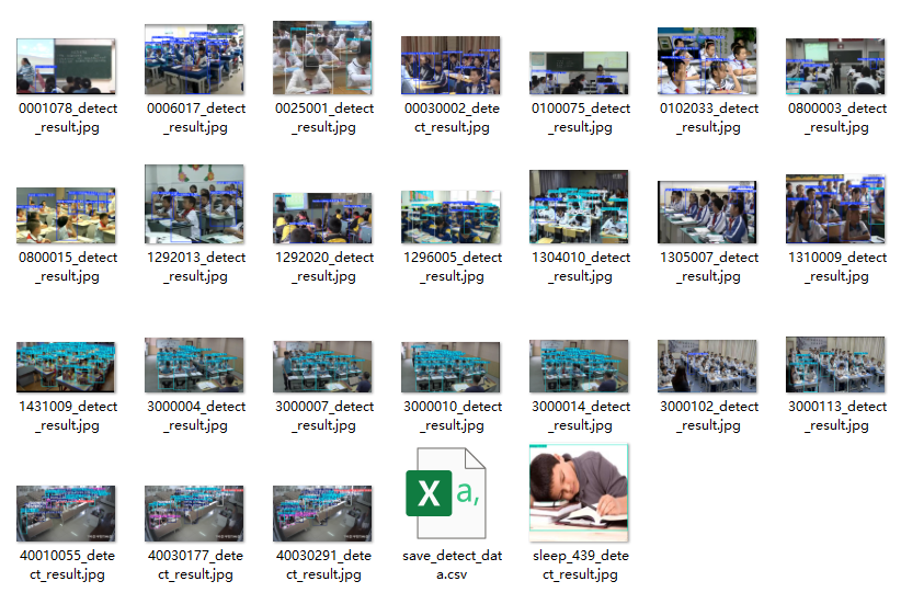这张图展示了学生专注度的一次检测结果,包括检测时间、检测到的种类、各行为的置信度、目标的位置信息等。用户可以通过界面查看并分析检测结果,提升学生专注度检测的效率。