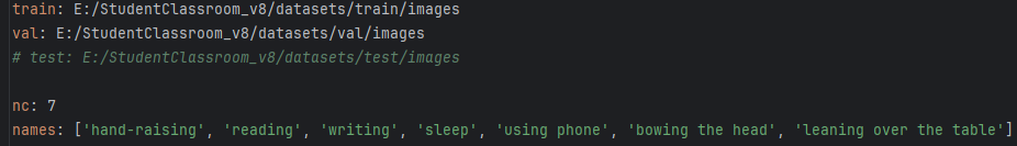 test: E:/StudentClassroom_v8/datasets/test/images 测试集的路径