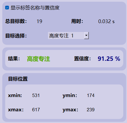 (1)这表示模型对检测到的目标属于“高度专注”类别的置信度为91.25%。