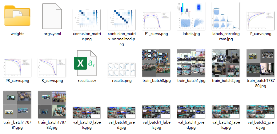在深度学习的过程中,我们通常通过观察损失函数下降的曲线来了解模型的训练情况。对于YOLOv8模型的训练,主要涉及三类损失:定位损失(box_loss)、分类损失(cls_loss)以及动态特征损失(dfl_loss)。训练完成后,相关的训练过程和结果文件会保存在 runs/ 目录下,具体如下: