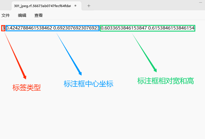每一行代表标注的一个目标,通常包括五个数据,从左到右依次为:类别id、x_center、y_center、width、height。