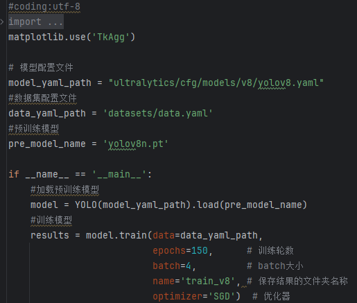 (7)name=’train_v8′: 指定了此次训练的命名标签,用于区分不同的训练实验。
