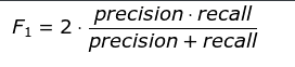 预测类别的f1分数(精确率和召回率的调和平均数),公式如下: