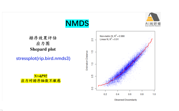 3)案例2鸟类物种组成数据的排序:CA、PCoA和NMDS比较