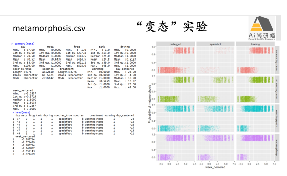 3) 案例2蝌蚪“变态”与否(0,1)的多因素分析:广义线性混合效应模型(glmm)