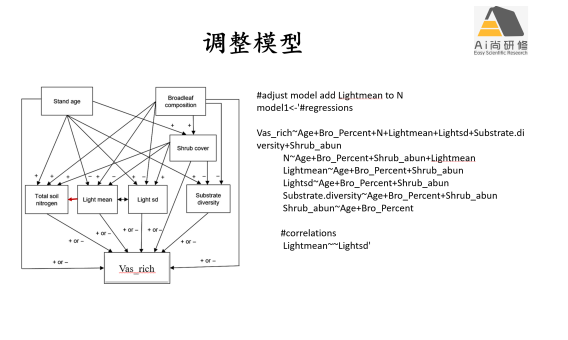 案例2中,在不同演替阶段下研究林下维管植物多样性时需关注的环境异质性和资源可获得性因素:通过优化模型与对比分析来评估其影响,并最终展示研究结果