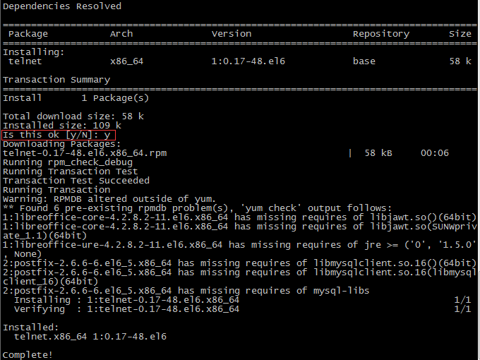 telnet hadoop04 44455