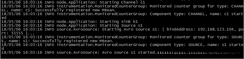 [hadoop@hadoop05 ~]$ flume-ng agent --conf conf --conf-file case_replicate_s1.properties --name a1 -Dflume.hadoop.logger=INFO,console