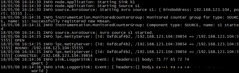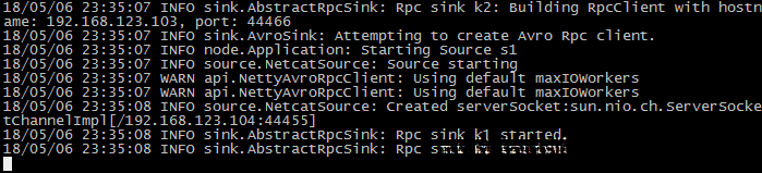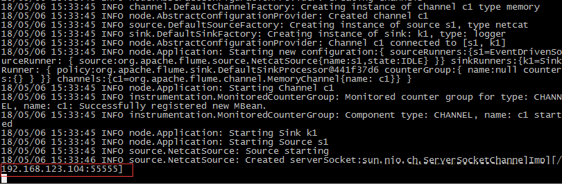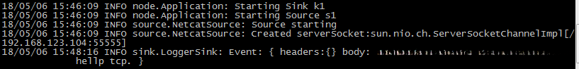 [hadoop@hadoop04 ~]$ flume-ng agent --conf conf --conf-file case_tcp.properties --name a1 -Dflume.hadoop.logger=INFO,console