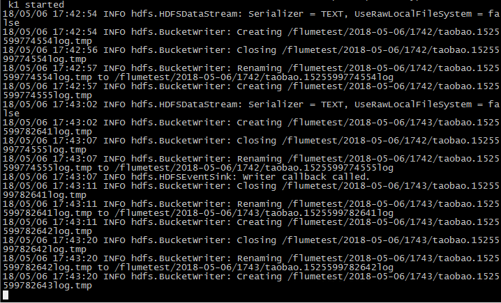 [hadoop@hadoop04 ~]$ flume-ng agent --conf conf --conf-file case_hdfs.properties --name a1 -Dflume.hadoop.logger=INFO,console