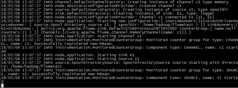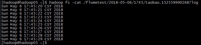 [hadoop@hadoop05 ~]$ flume-ng agent --conf conf --conf-file case_sink.properties --name a1 -Dflume.hadoop.logger=INFO,console