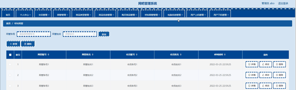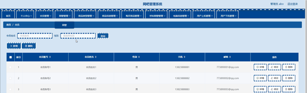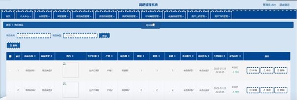 网管登录进入系统后可查看主页面、个人信息中心、会员服务模块、商品管理系统等,并支持详细的执行流程