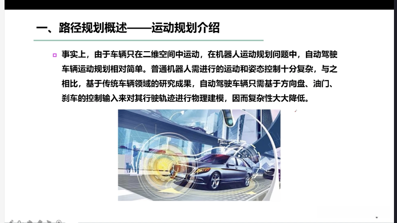 自动驾驶汽车被称为一种能够凭借车载传感系统感知道路环境并自主规划行驶路线以引导至预定目的地的智能化车辆。自动驾驶汽车融合了多种技术如自动控制体系结构人工智能视觉计算等成为计算机科学模式识别与智能控制相结合的重要成果。