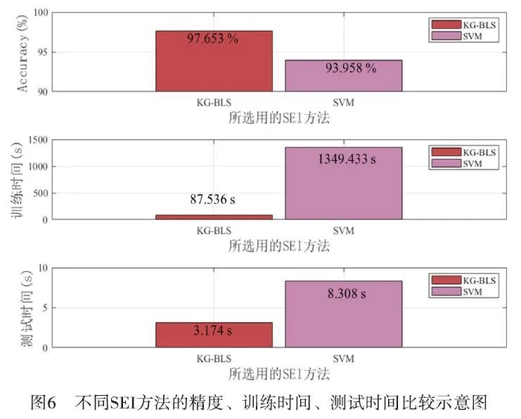 本节将介绍仿真实验中使用的数据集、生成的信号特征KG及其基于KG-BLS架构实现的SEI性能。随后生成实验所需的完整数据集,并对原始射频信号进行了标准化预处理以构建完整的信号特征KG。在此基础上对比提出了基于KG-BLS架构的新算法与现有传统的基于机器学习(ML)的方法其仿真性能对比结果将建立在完全相同的完整数据集基础上