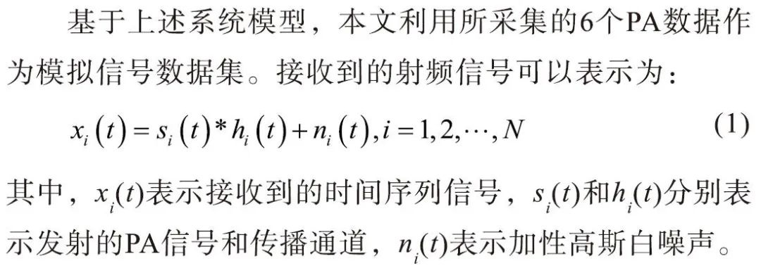 由6个功率放大器生成的连续信号样本被用作数据集的基础。通过设计统一的标准特征数据库,并设定每个样本包含N值较大的复杂度特性分析需求的具体解决方案。每个PA接收机处理后的IQ采样结果将提供一个完整的时域波形描述,并采用固定调制方案中的十六元相位-shift键控(16PSK)作为先验调制方式,在采集过程中加入信噪比(SNR)为X dB的理想高斯噪声干扰,在此基础上对相应PA接收的数据打上标签并确保其格式的一致性后将其转化为one-hot形式编码。因此,在训练过程中所建立的数据集中包含来自不同工作状态下的完整时域波形描述和精确的时间戳信息标记信息