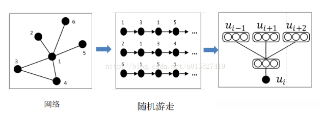 总体步骤就是Network/graph ---------random walk ---------得到节点序列-------- skip-gram