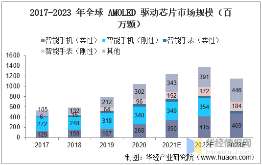 2017-2023年全球AMOLED驱动芯片市场规模(百万颗)