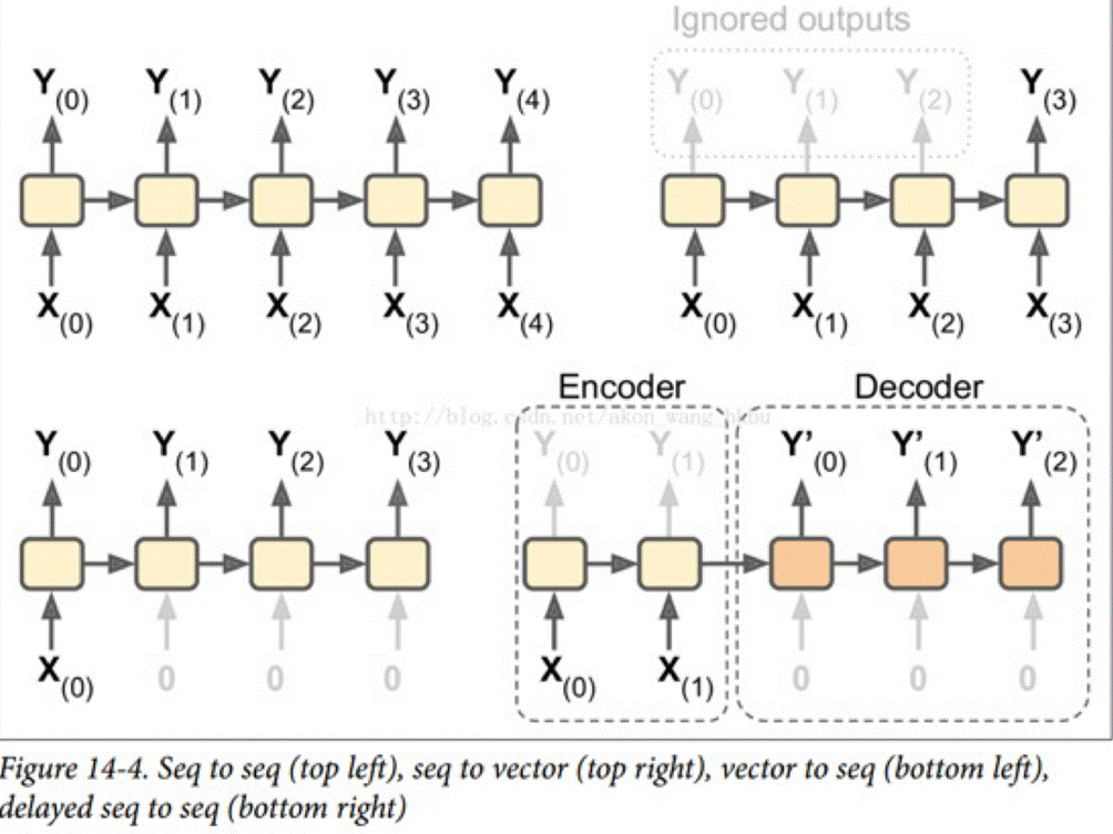 和之前的深度神经网络一样,循环神经网络也使用反向自动微分进行训练,但是不同的是,虚拟神经网络需要首先按照时间展开成为一个深度神经网络然后再使用反向自动微分,虽然展开的深度神经网络有很多层,但是循环神经网络的训练值仍然只有原来的数量。