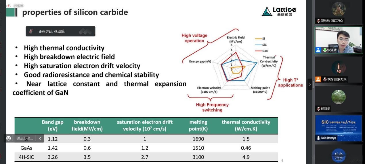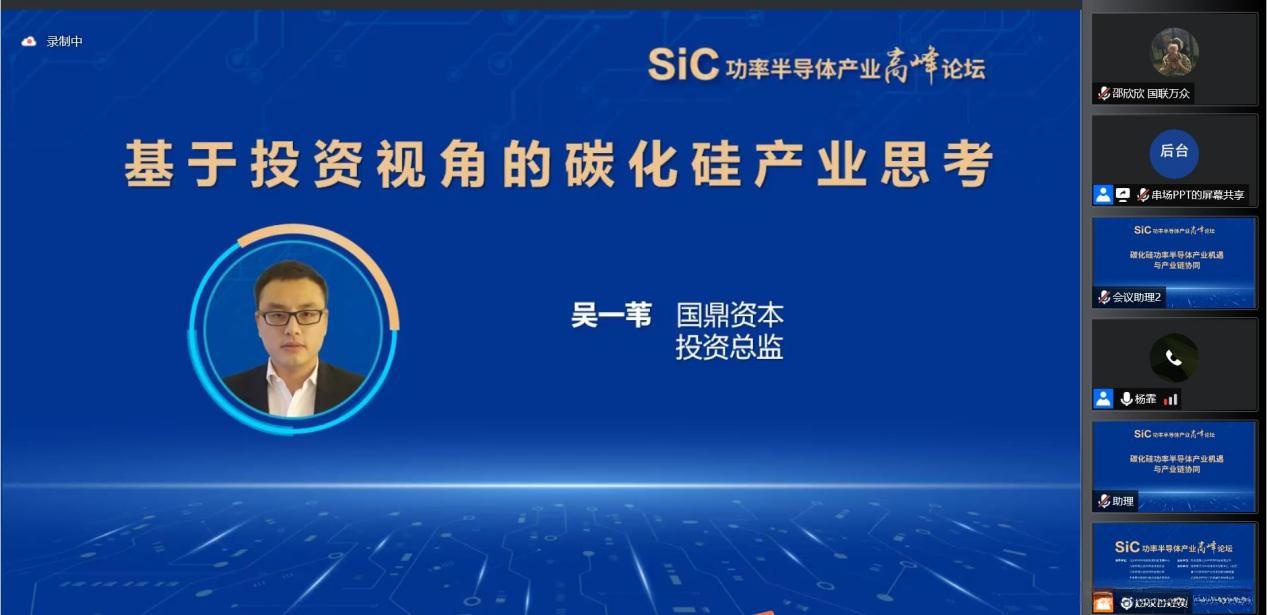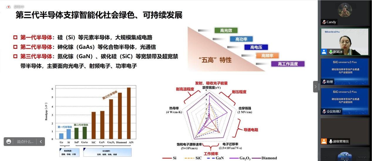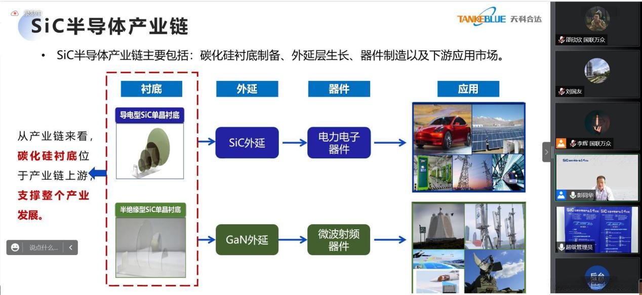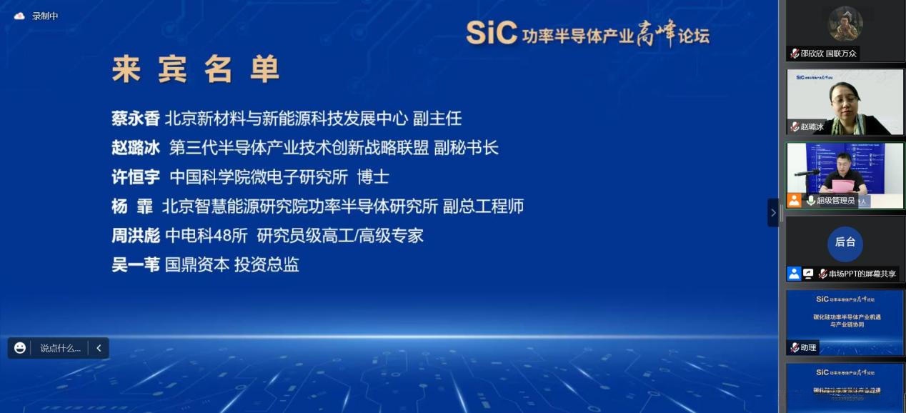 科学院微电子研究所博士许恒宇,株洲中车时代电气股份有限公司中车科学家新型功率半导体器件国家重点实验室常务副主任,教授级高级工程师刘国友,中国电子科技集团公司第四十八研究所研究员级高工/高级专家周洪彪,北京天科合达半导体股份有限公司董事、常务副总经理/博士彭同华,北京晶格领域半导体有限公司总经理张泽盛,第三代半导体产业技术创新战略联盟副秘书长赵璐冰,北京国联万众半导体科技有限公司市场部部长王永维,北京智慧能源研究院功率半导体研究所副总工程师杨霏,国鼎资本投资总监吴一苇,深圳市中投德勤投资管理有限公司投资总监黄慧锋,北京国基科航第三代半导体检测技术有限公司副总经理李艳明等13位业内专家荟聚一堂,共同探讨如何加快推动第三代半导体产业向技术高端化、企业品牌化、应用泛在化、区域协同化发展,为大中小企业健康发展提供强劲引擎,促进我国企业走高质量发展道路。