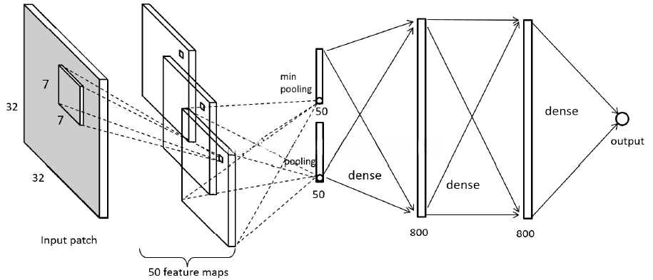 输入的块的大小是32*32,非重叠,块的分数与图像的分数一致,Pooling时,直接将featuremap 变成一个点。