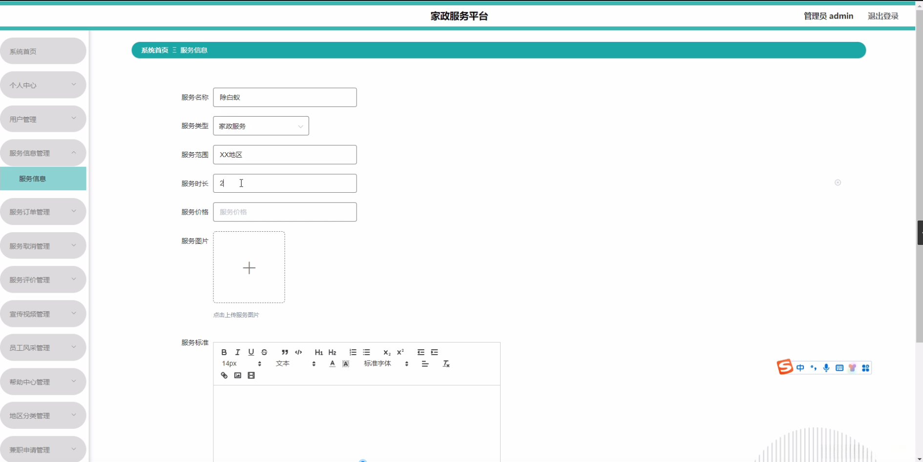 目的: 本研究的目的在于设计并实现一个功能全面、操作简便的家政服务平台,旨在通过技术手段提升家政服务的匹配效率、质量和用户满意度。该系统的实施将有助于构建一个综合性的服务交易和管理环境,为用户和家政人员提供一个互信、互利的合作关系,同时也为企业提供有效的管理和运营工具。