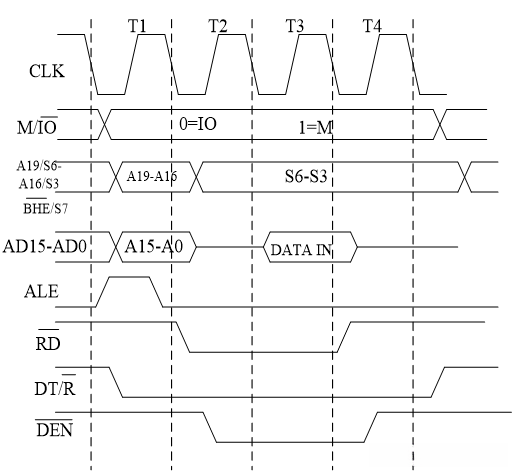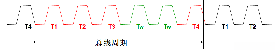 一个总线周期通常由四个T单元构成。其中T1负责输出地址;**T2和 T3负责传送数据。若存储器或外部设备运行较慢,则建议插入等待周期 **Tw用于处理延迟情况。