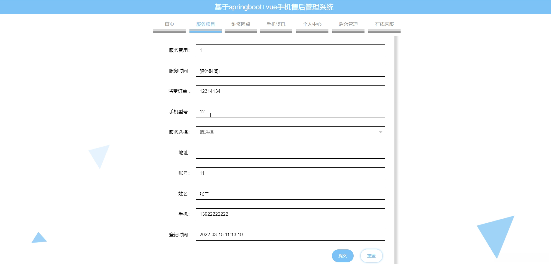Springboot毕设项目基于springboot+vue手机售后管理系统5rr5d(java+VUE+Mybatis+Maven+Mysql)